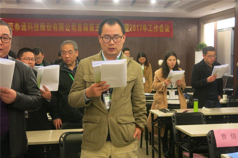 大會伊始,公司董事長吉榮新作了題為《新規(guī)則、新思想、新起點、新泰通》的2017年工作報告,提出了“一個總體思路、五項主要目標、十大重點工作”。報告從經(jīng)營拓展、研發(fā)創(chuàng)新、管理提升、泰通家園等四個方面總結(jié)回顧了公司2016年取得的主要工作成績,從經(jīng)營目標、服務(wù)目標、研發(fā)目標、建設(shè)目標、管理目標等5個維度指明了2017年的工作方向,從體系建設(shè)、戰(zhàn)略規(guī)劃、預算管理等10余方面周密部署了2017年度重點工作,為實際工作的開展提供了有力的抓手,報告內(nèi)容全面、數(shù)據(jù)詳實、催人奮進,參會的全體代表倍感鼓舞!